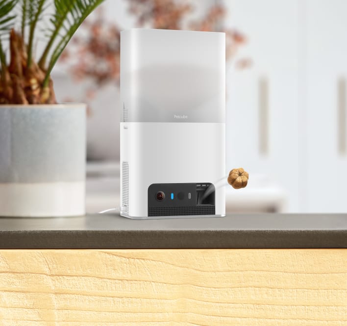 See and talk to, toss treats, play remotely, enhance training, and prevent anxious behavior